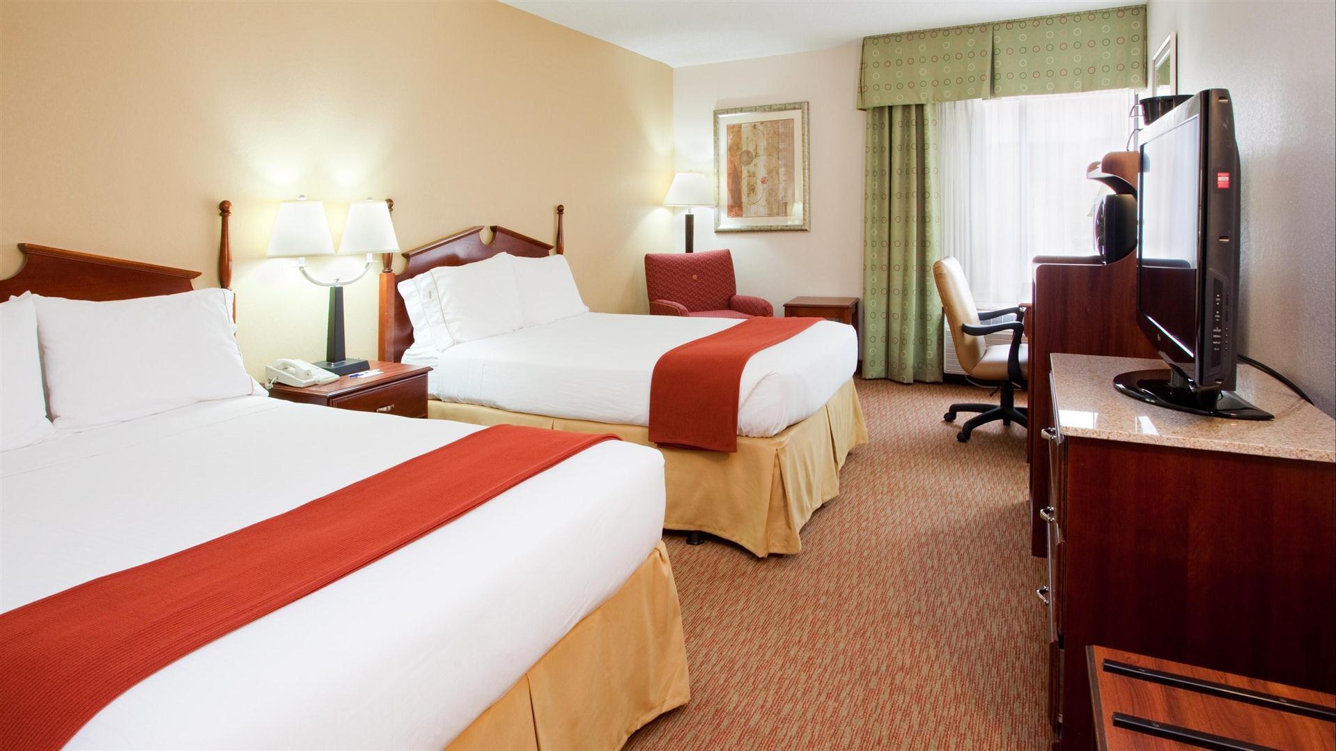 ฮอลิเดย์อินน์เอ็กซ์เพรส เดอรัม ตั้งอยู่ใกล้อินเตอร์สเตท 85 ในเดอรัม รัฐนอร์ทแคโรไลนาโรงแรมของเรามีบริการรถรับส่งฟรีไปยังและกลับจากศูนย์การแพทย์มหาวิทยาลัย Duke Hospital Regional Hospital และคลินิก Duke ในพื้นที่เราตั้งอยู่ในทำเลที่สะดวกในนอร์เทิร์นเดอร์แฮมโดยสามารถเข้าถึงได้ง่าย I-85, US-70, Durham Freeway และ 15-501โรงเรียนวิทยาศาสตร์และคณิตศาสตร์ NC, พิพิธภัณฑ์ชีวิตและวิทยาศาสตร์, มอลล์ Northgate, American Tobacco District, ศูนย์ศิลปะการแสดง Durham, โรงละครแคโรไลนา และสวนสาธารณะเดอร์แฮมส์ เซ็นทรัล เป็นหนึ่งในสถานที่ที่น่าสนใจในบริเวณใกล้เคียงนอกจากนี้เรายังชอบให้ทีมกีฬาที่เยี่ยมชมดยุค, NC Central, Durham Bulls Athletic Park และ Durham Athletic Park ในฐานะผู้เข้าพักที่ Holiday Inn Express Durham คุณจะเพลิดเพลินกับโรงแรมที่สะดวกสบายพร้อมบุฟเฟต์อาหารเช้าร้อนฟรี กาแฟและชาฟรี อินเทอร์เน็ตไร้สาย (WiFi) ฟรี ศูนย์ออกกำลังกายนอกสถานที่ และสระว่ายน้ำกลางแจ้งตามฤดูกาลห้องพักมีเตียงสะดวกสบาย เครื่องชงกาแฟ Keurig ตู้เย็น ไมโครเวฟ โต๊ะทำงาน WiFi และช่องทีวีพรีเมี่ยม เช่น HBO เรารักมีคุณอยู่ที่นี่ในนอร์ทแคโรไลนาที่ Holiday Inn Express Durham! คุณสมบัติของโรงแรม: ตั้งอยู่ริมทาง I-85 ที่ Guess Rd เพียงไม่กี่นาทีจากตัวเมืองเดอร์แฮมและศูนย์การแพทย์ Duke ฟรีอาหารเช้าร้อนและกาแฟ ฟรี WiFi ศูนย์ธุรกิจ สระว่ายน้ำกลางแจ้ง ที่จอดรถฟรี ไมโครเวฟ ตู้เย็น และ Keurig ในทุกห้อง ห้องพักสำหรับผู้พิการ และสิ่งอำนวยความสะดวก ADA บริการรถรับส่งไปยังศูนย์การแพทย์ในบริเวณใกล้เคียง (ในช่วงเวลาที่กำหนดไว้) เป็นมิตรกับสัตว์เลี้ยง (ค่าธรรมเนียมไม่คืนเงิน $50 ต่อการเข้าพัก) ไอเอชจี รีวอร์ด คลับ สถานที่สำคัญใกล้เคียง: ศูนย์การค้านอร์ทเกต พิพิธภัณฑ์ชีวิตและวิทยาศาสตร์ ไบรท์ลีฟสแควร์ วิทยาเขตยาสูบอเมริกัน ดีพีเอซี มหาวิทยาลัยดยุค โรงเรียนวิทยาศาสตร์และคณิตศาสตร์ NC มหาวิทยาลัยเซ็นทรัล NC ธุรกิจใกล้เคียง: ทรีเบิร์นคอร์ปอเรทพาร์ค สวนสามเหลี่ยมวิจัย ศูนย์การแพทย์ดยุค สนามบินใกล้เคียง: RDU: ราเลย์-เดอรัม อินเตอร์เนชั่นแนล - 17 ไมล์